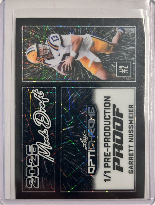 Garrett Nussmeier 1/1 Pre-Production Proof 2026 Mock Draft Leaf Optichrome