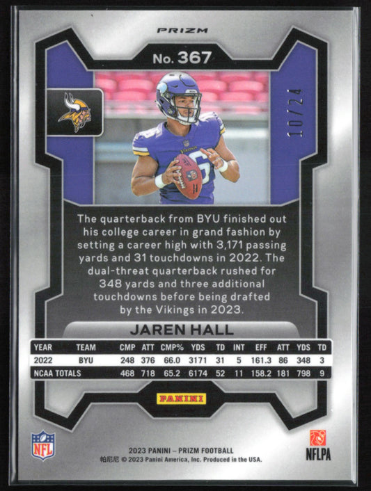 Jaren Hall RC Gold Sparkle /24 2023 Prizm