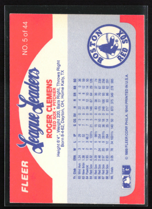 Roger Clemens 1989 Fleer League Leaders