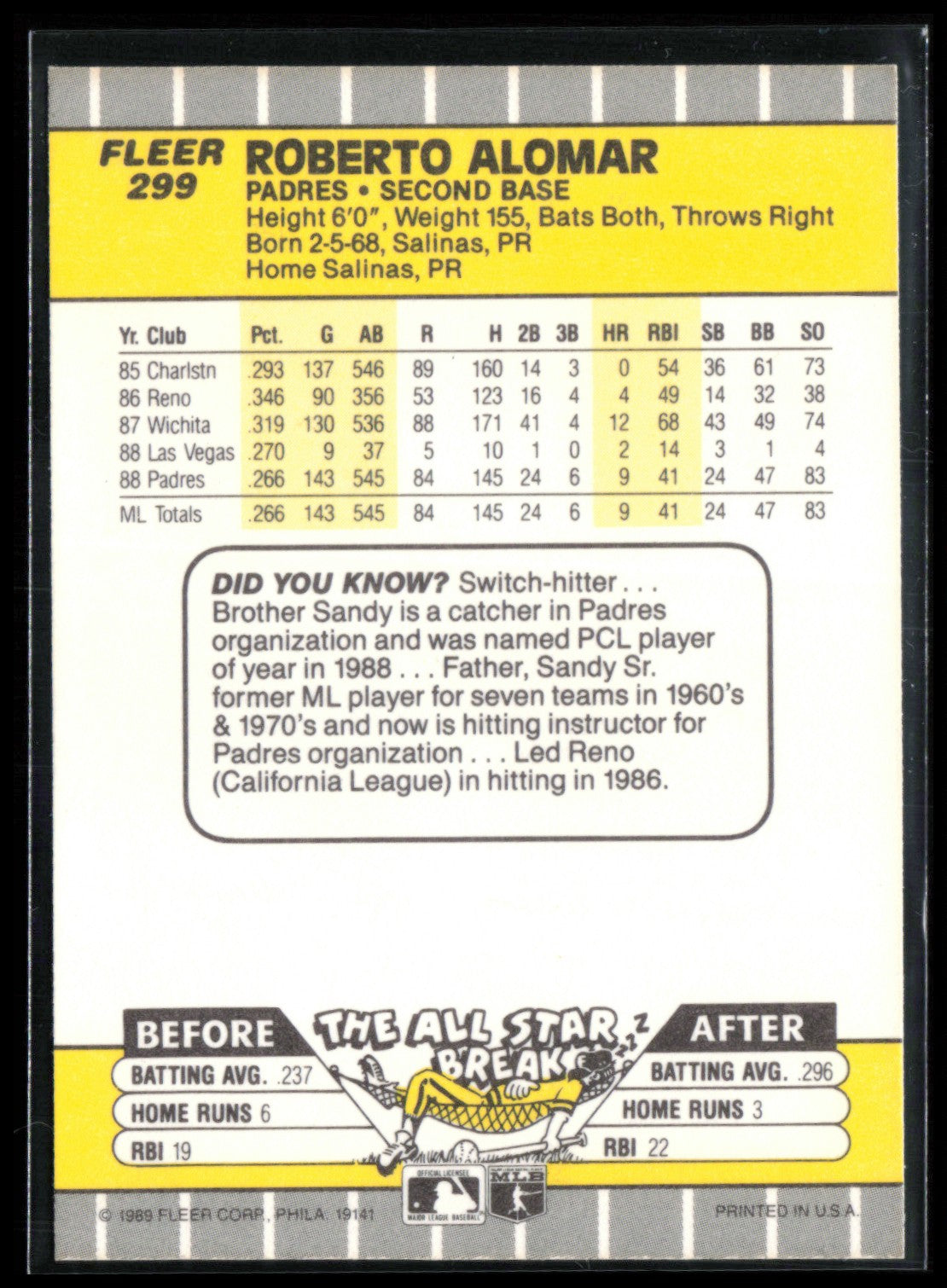 Roberto Alomar 1989 Fleer