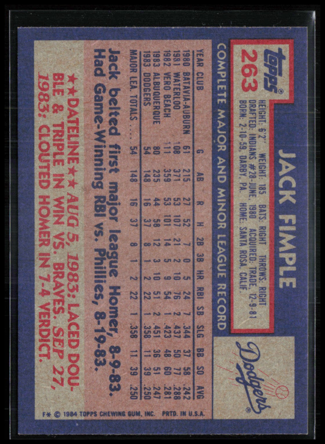 Jack Fimple 1984 Topps