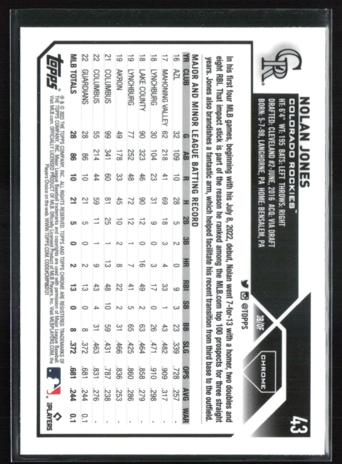 Nolan Jones RC Sepia Refractor